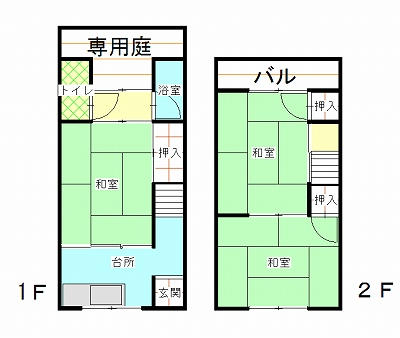 | 1・2階利用できるメゾネットタイプです、コンビニまで徒歩約5分です、今回トイレの全改装入りましたので、とても綺麗です、1階には専用庭があり、2階にはベランダがあります。 |